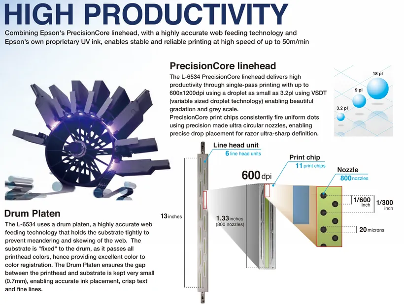 Marc Tinkler, responsable de marketing de productos, comercial e industrial de Epson Europe, señala: «Epson ofrece a sus clientes una solución de impresión de etiquetas de alta calidad integral con todas las tecnologías principales diseñadas por nosotros, incluidos los cabezales de impresión, el hardware, el software y las tintas. Nuestra nueva SurePress L-6534VW también ofrece una gran relación calidad-precio. El bajo coste total de propiedad se logra gracias a la impresión de más etiquetas en menos tiempo, los residuos se reducen gracias al corto recorrido del sustrato y a la función de alimentación inversa, y la tecnología de verificación de inyectores (NVT) detecta los inyectores bloqueados y realiza la limpieza automática de los cabezales de impresión. En resumidas cuentas: un aumento del tiempo de actividad y una reducción de las interrupciones».