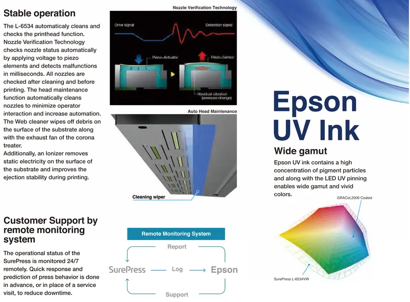 Supervisión de la impresión: el sistema de supervisión remota de Epson (ERMS) permite a los ingenieros proporcionar diagnósticos remotos sobre el rendimiento de la impresión.